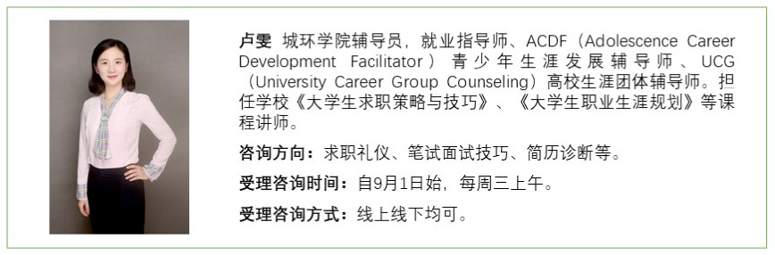 1. 本学期“一对一”生涯发展与求职就业个性化咨询服务将于9月1日(周一)正式开始,欢迎同学们预约。后续咨询相关通知更新,请留意“华大就业汇”微信公众号。