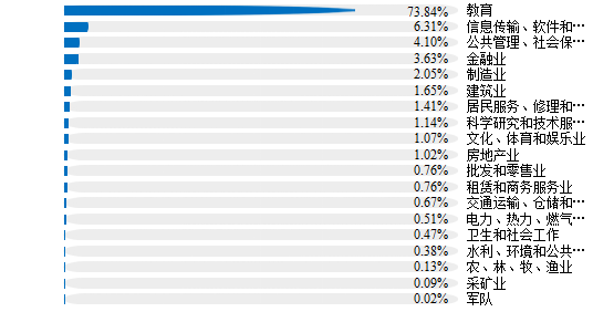 教育(72.98%)、信息传输、软件和信息技术服务业(15.32%) |