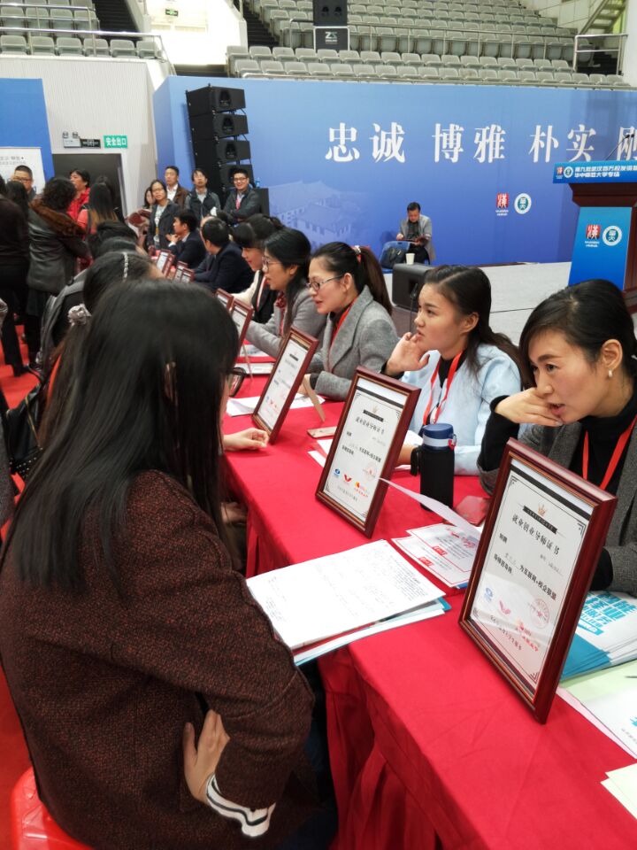 11月26日,武汉市百万大学生留汉创业就业工程大型校园巡回招聘第六场活动在华中师范大学佑铭体育馆举行。此次招聘会由蔡甸区承办,现场共组织了全市近200家企业,提供招聘岗位7900个,其中不乏中法生态城管理委员会、格力集团、中交二航局、上汽通用汽车武汉分公司等国内知名企业。当天的招聘会不仅吸引了华中师范大学的应届毕业生,还有周边武汉理工大学、武汉大学、华中科技大学、华中农业大学、湖北工业大学等高校的毕业生前来求职应聘,现场有2100名学生与企业达成意向签约,其中本科生约1200名,研究生约900名,博士生5名。