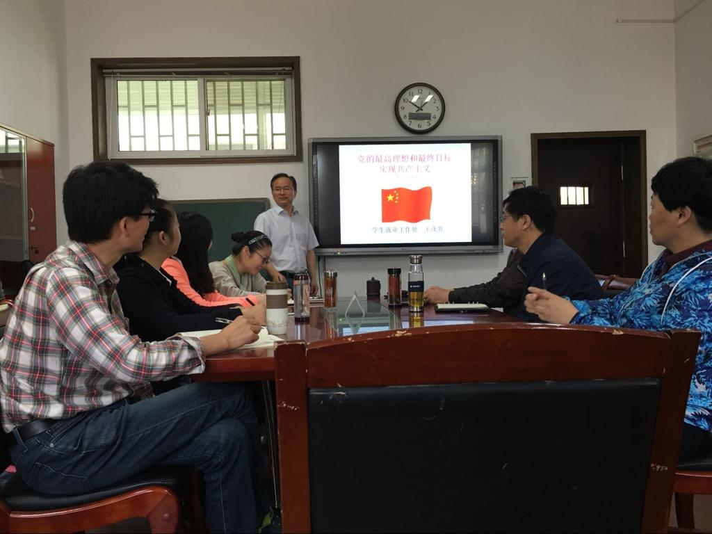 (通讯员 钟文锐)4月29日上午,学生就业工作处党支部在就业处B110室组织开展“两学一做”学习教育,支部书记、处长王茂胜教授为全处党员主讲党课《党的最高理想和最终目标是实现共产主义》。本次集中学习同时也是就业处支部今年“特色党日”活动之一,为提高“三会一课”党课的针对性实效性,增强支部服务师生的凝聚力战斗力,还从就业工作助理团队中邀请了部分学生党员一同听党课。
