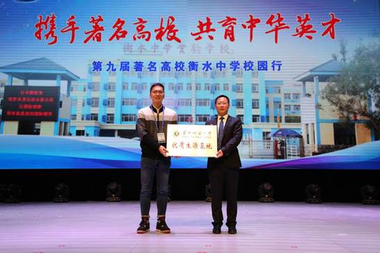 10月12日至14日,以“携手著名高校,共育中华英才”为主题的第九届“全国著名高校衡中校园行”活动开幕式在衡水中学举行,华中师范大学与来自清华大学、北京大学等110余所高校的270余位知名专家、教授、招生负责老师齐聚衡水中学,与师生面对面交流互动。为深入推进招生宣传常态化建设,本科招办安排音乐学院付彪老师前往参加了校园行活动,并建立了优质生源基地。