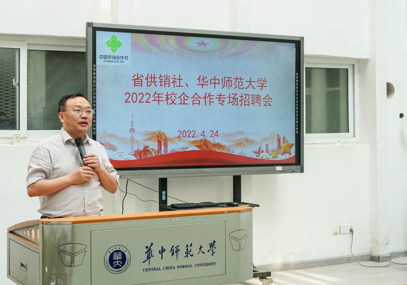 省供销总社党组成员、副主任张鹏介绍了供销社的历史及在国家经济社会发展中的重要责任和历史使命。他欢迎华师学子加入供销社,在乡村振兴、服务三农的舞台上贡献智慧和力量。