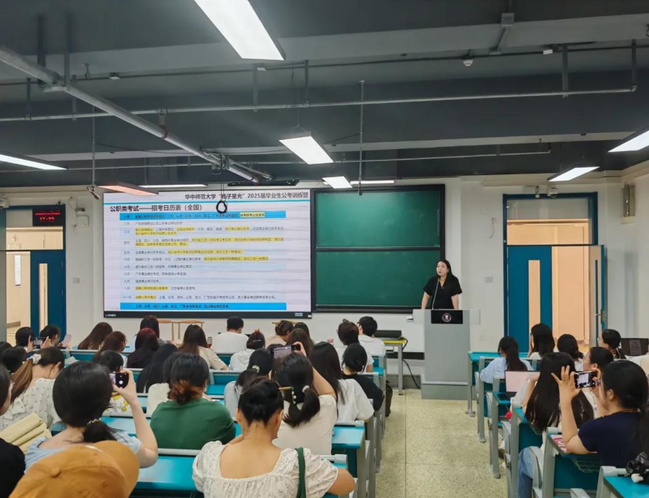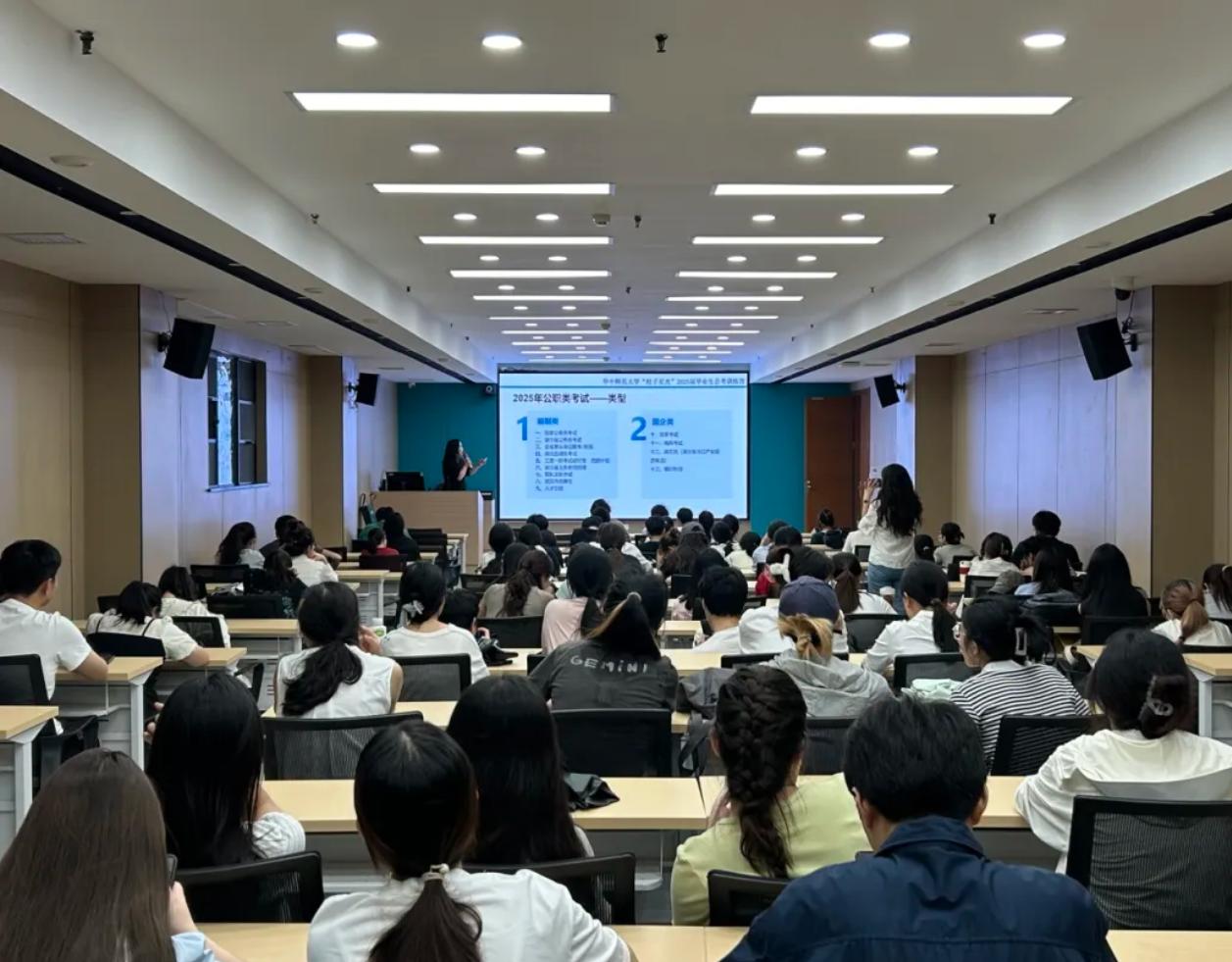 为鼓励引导我校2025届毕业生服务国家发展战略需要赴基层就业,由党委学生工作部就业处主办、中国农村研究院承办的“桂子星光”2025届毕业生公考训练营活动于9月上旬陆续走进公共管理学院、城市与环境科学学院、教育学院和法学院等学院,开展公职类考试政策解读及培训宣讲。