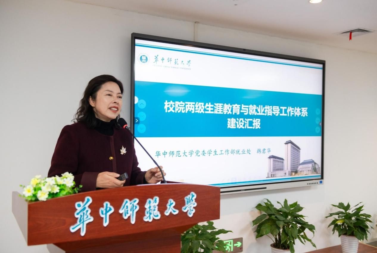 会议第一项,学工部副部长、就业处处长韩君华就“校院两级生涯教育与就业指导工作体系建设”做主题汇报。韩君华首先介绍了我校2024届毕业生去向落实率的历史性成绩,对各培养单位的就业工作给予了充分肯定,并提出了新时期我校就业工作的新理念、新目标、新定位,新任务。她强调了高校生涯教育的重要意义,从课程、平台、活动方面展示了我校生涯教育与就业指导工作基础,并为未来一段时期我校生涯教育和就业指导工作擘画清晰蓝图。最后,韩君华着重布置了生涯教育与就业指导中心队伍建设相关工作。