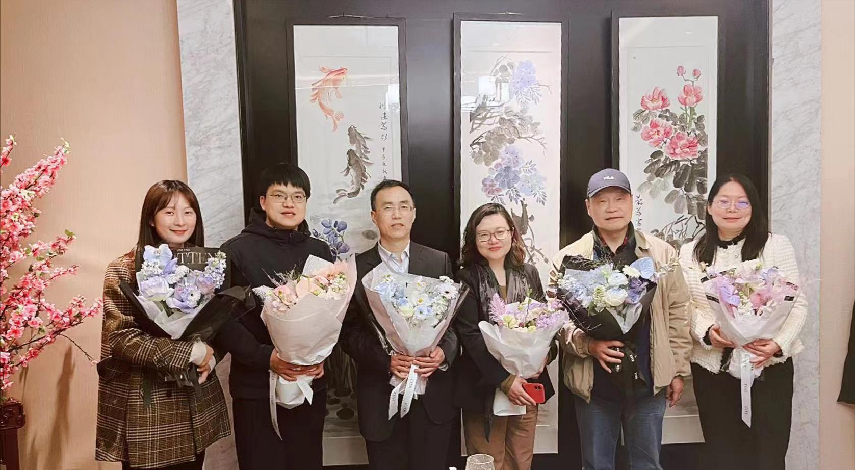 (浙江校友向老师送花)