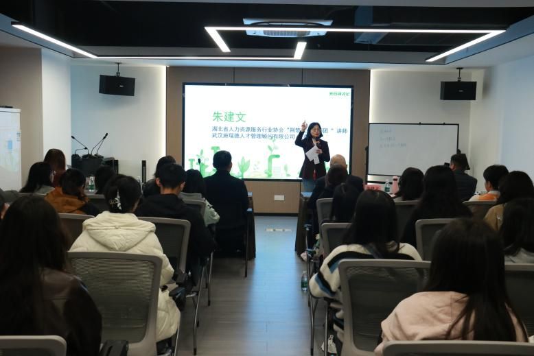 紧接着,湖北省荆楚就业讲师团讲师、武汉施瑞德人才管理顾问有限公司董事长朱建文带来“解读新质生产力及大学生职业规划”主题分享。她结合当前新质生产力发展趋势,分析了不同专业学生的职业发展路径,指出“专业无优劣,关键在将专业优势与行业需求结合”,以新闻专业为例,反驳“就业难”误区,强调公文写作、内容创作等能力在政府、国企及企业中的高需求,鼓励学生跳出“专业局限”,通过实践拓展职业边界。