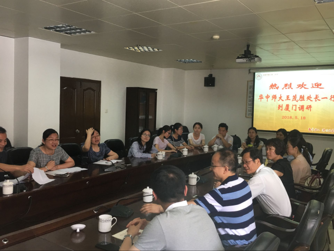 5月19日,调研团队赴厦门市教育局走访。厦门市委教育工委常务副书记林佳添代表厦门市教育局对调研团队的到来表示热烈欢迎。林书记表示,自2013年将华中师范大学设置为厦门市教育局定点招聘单位以来,我校为厦门市教育局及所属学校输送了近890名的优秀毕业生,这不仅充实了厦门市的师资队伍,更形成一种人才引进的价值引领,让更多的优秀毕业生“了解厦门、应聘厦门、留在厦门”。厦门市教育局厦门市教育事务受理中心副主任蔡清阳介绍了近五年来我校毕业生的整体工作情况,并就青年教师的“师徒制培养”、“教师成长支撑计划”等方面做了详细的解读。